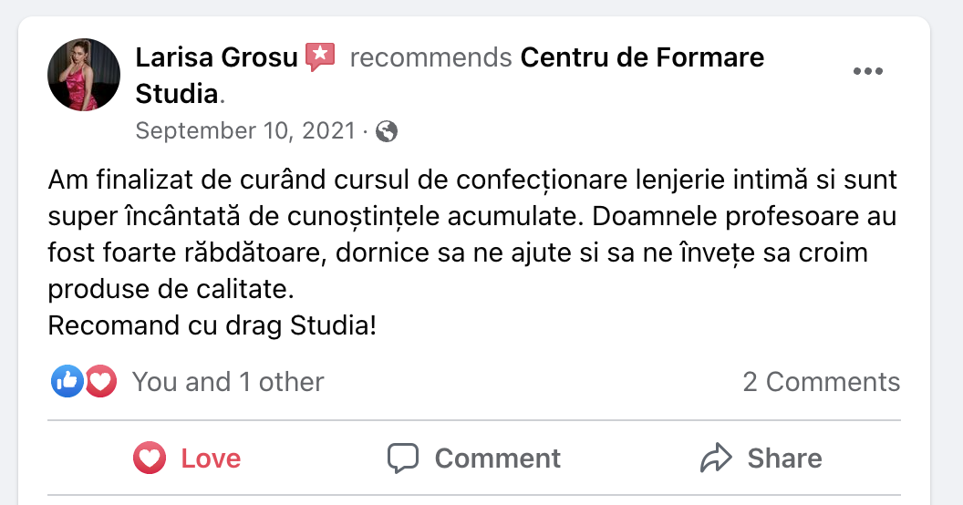 La StudiaForm, pasiunea ta pentru croitorie și modă va fi cultivată și transformată în abilități reale, deschizându-ți uși către noi oportunități creative și profesionale.