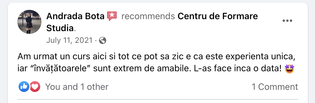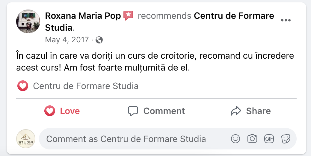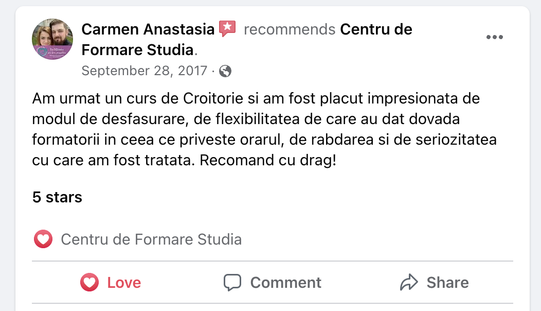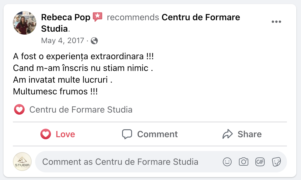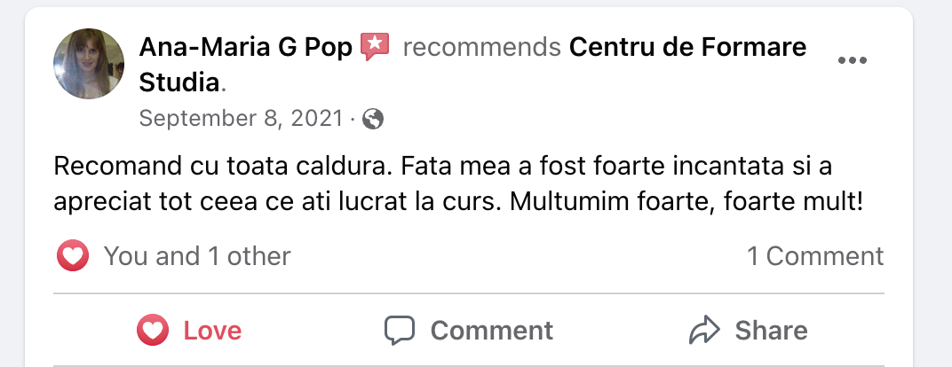 👉 Înscriere și rezervare loc – Se achită suma de 200 lei în contul firmei. Aceasta este inclusă în prețul total al cursului.